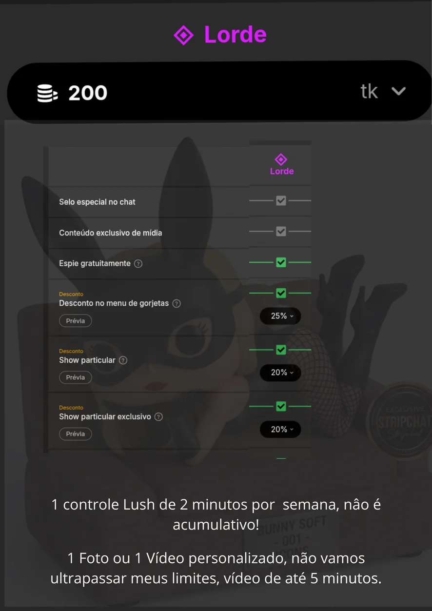 Classificação de Paus, Brinquedos Sexuais, Fetiche por Pés, Humilhação, Twerking, Show de óleo, Dança Erótica, Instruções para Bater Uma, Masturbação, Palmadas, Foda de mamas, Role Play, Felácio, Corno, Canzana